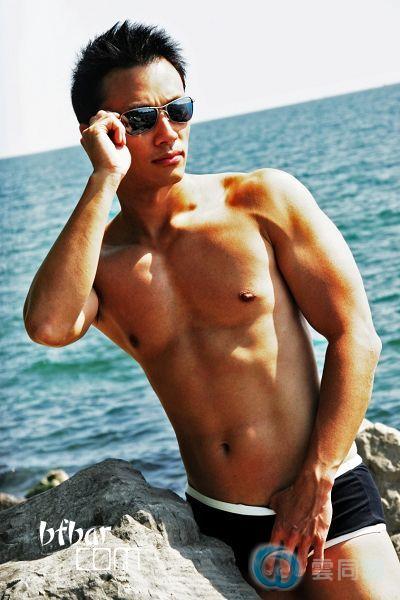 2022横渡钱塘江的肌肉男来了,大胸肌小泳裤太..