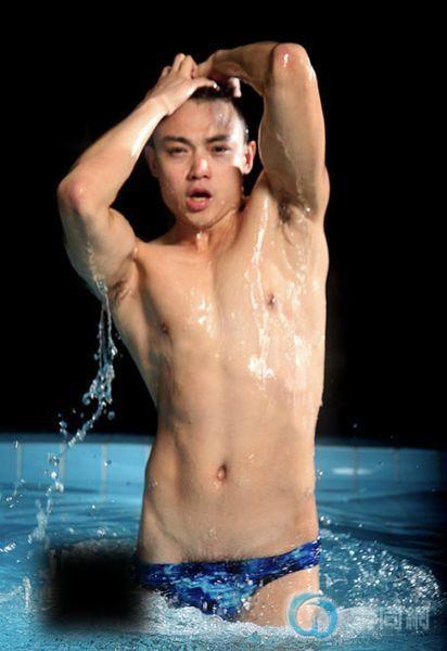 2022横渡钱塘江的肌肉男来了,大胸肌小泳裤太..
