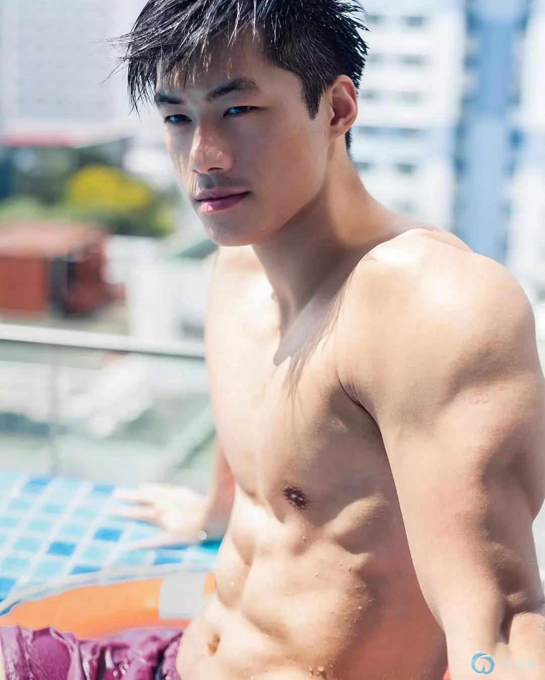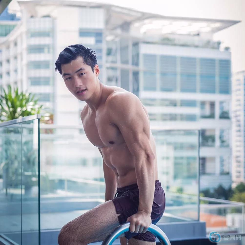 2022横渡钱塘江的肌肉男来了,大胸肌小泳裤太..