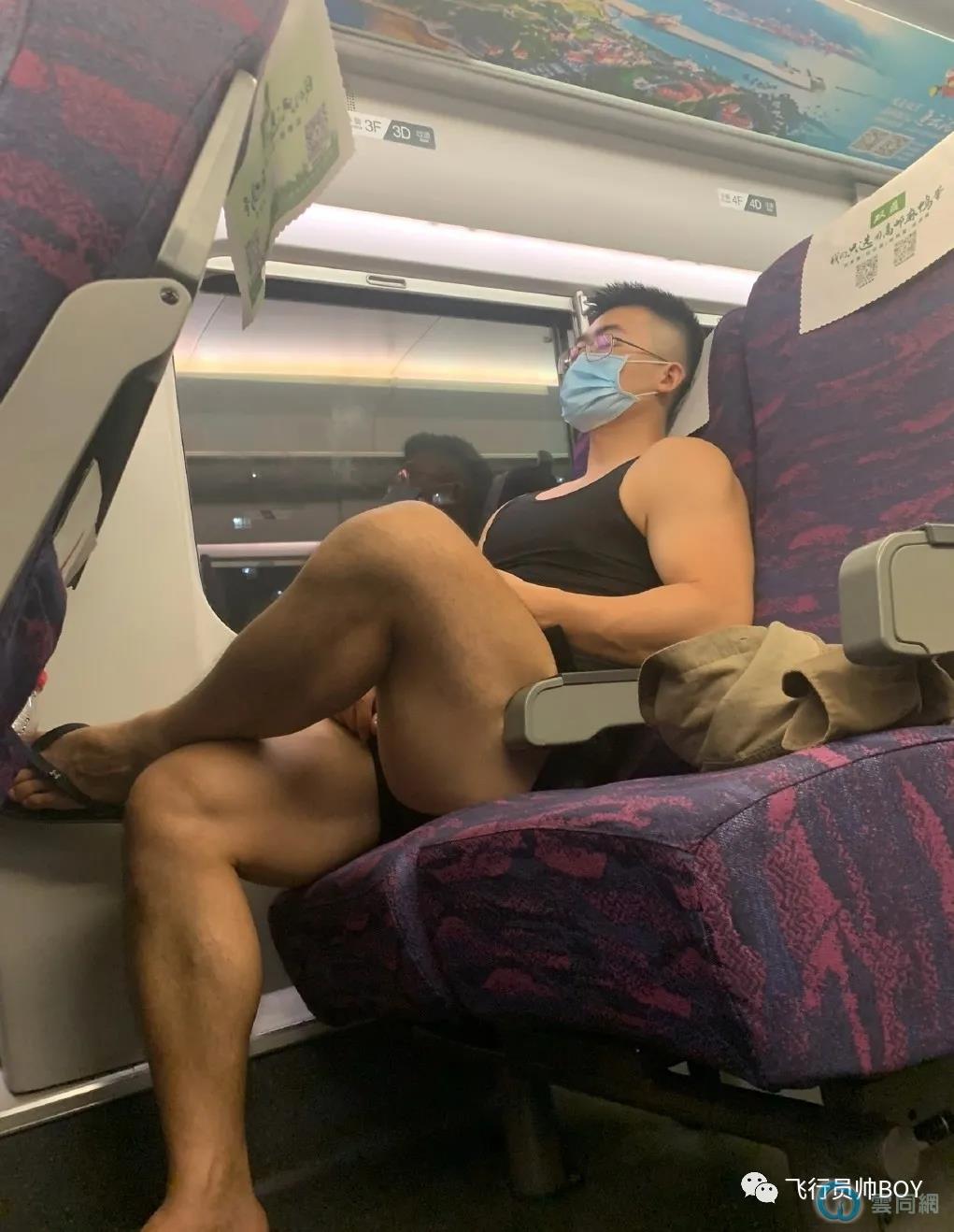 高铁上的大胸肌壮男穿超短裤,这粗壮的大腿亮了!