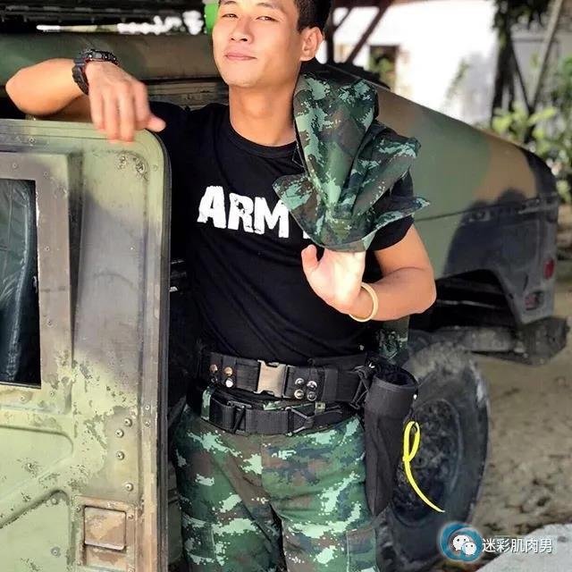 迷彩小兵哥肌肉照,黝黑壮硕肌肉搬运工