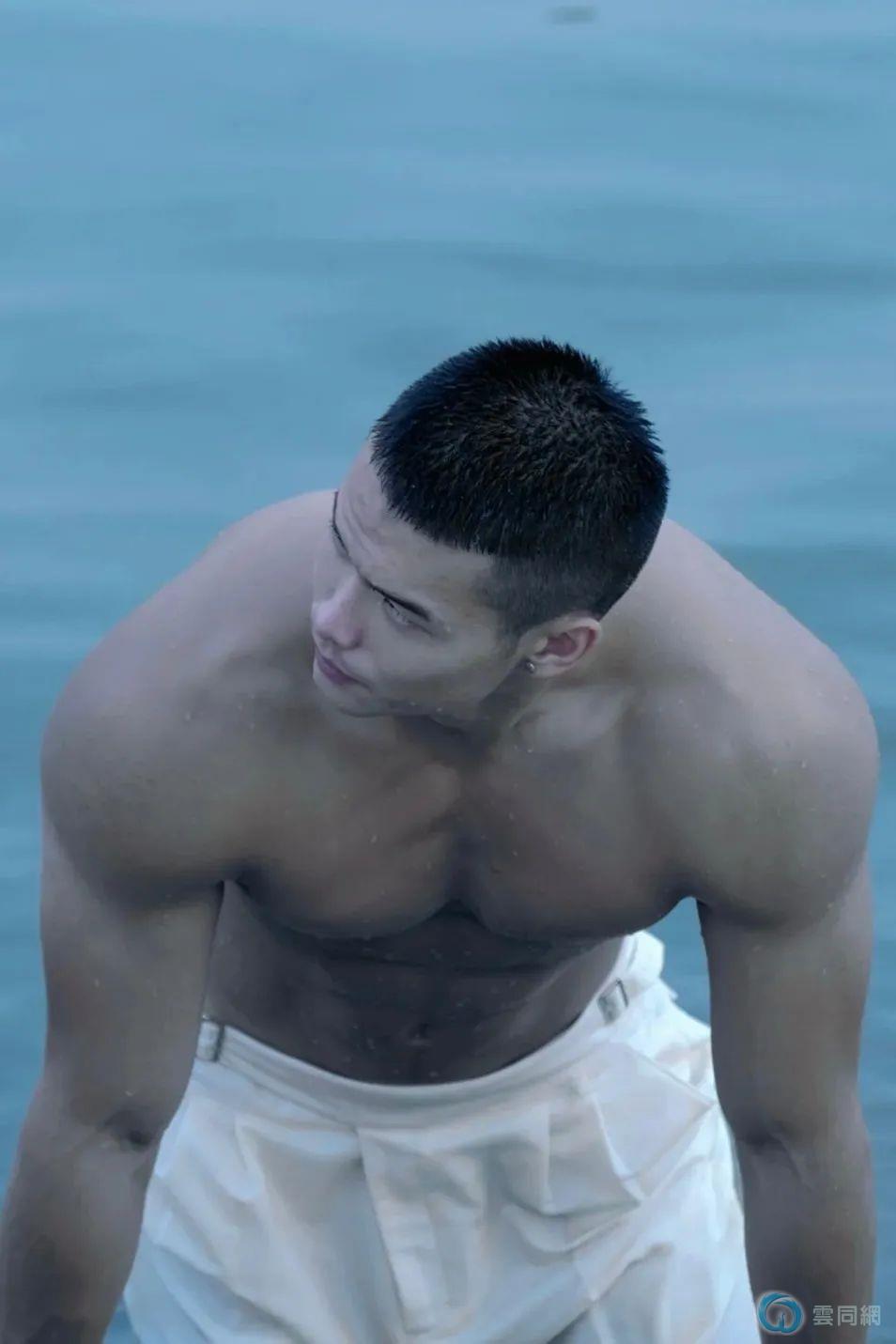 2022横渡钱塘江的肌肉男来了,大胸肌小泳裤太..