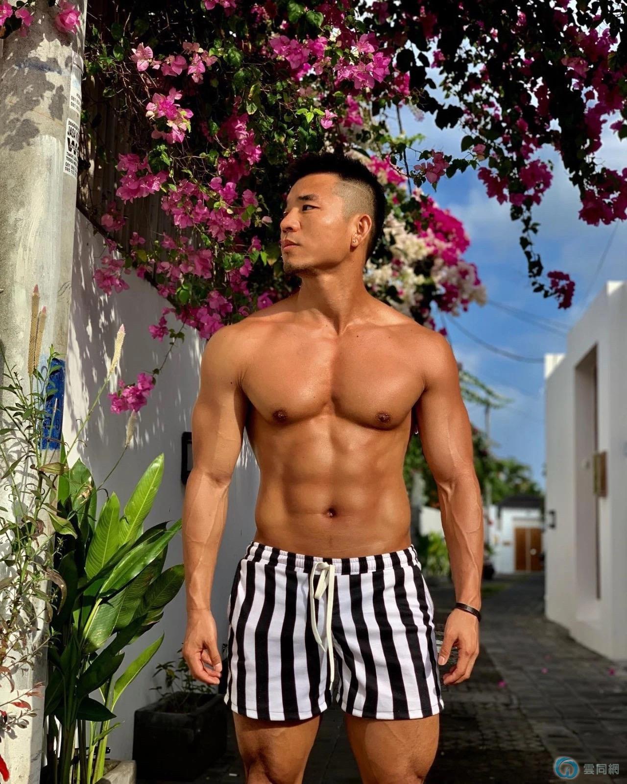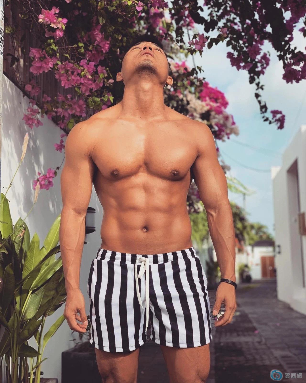 他有一组穿着花泳裤戏水的照片一致都很受网友们的喜欢,他黝黑的肌肤在阳光下熠熠发光,他壮实的肌肉身材和小花泳裤又形成了强烈的反差。