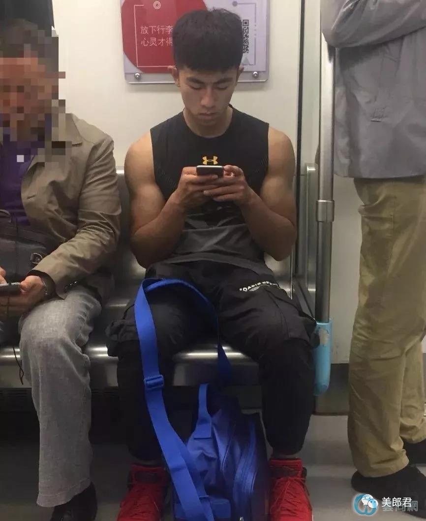 高铁上的大胸肌壮男穿超短裤,这粗壮的大腿亮了!