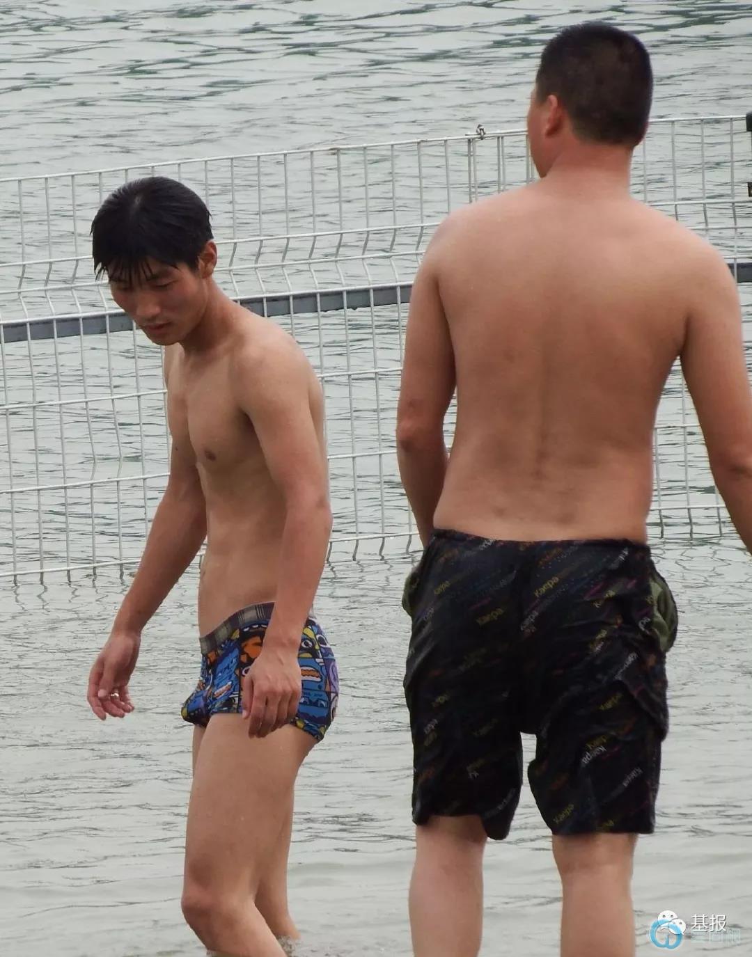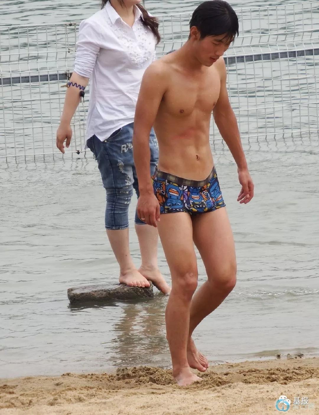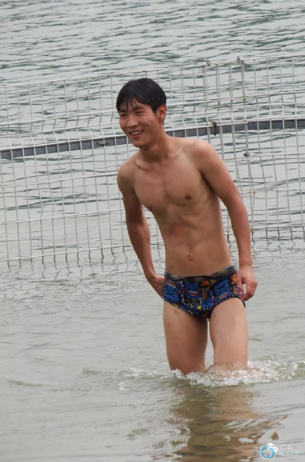2022横渡钱塘江的肌肉男来了,大胸肌小泳裤太..