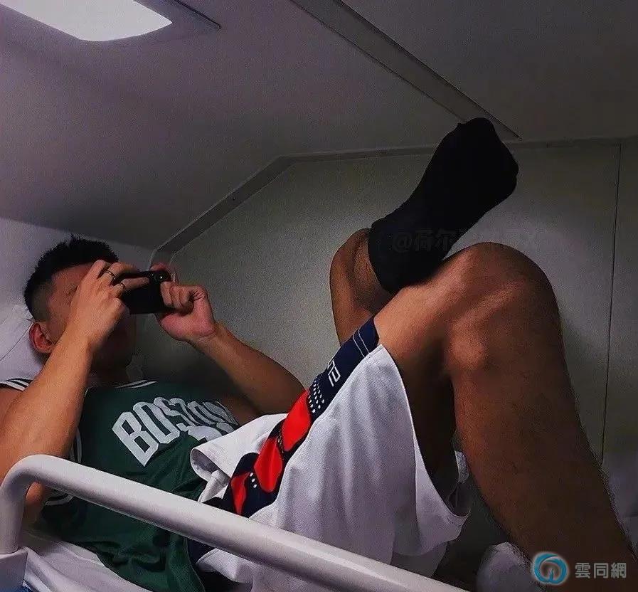 高铁上的大胸肌壮男穿超短裤,这粗壮的大腿亮了!