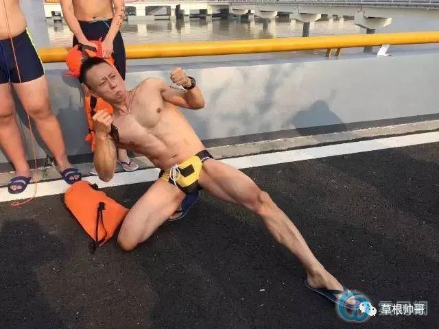2022横渡钱塘江的肌肉男来了,大胸肌小泳裤太好看