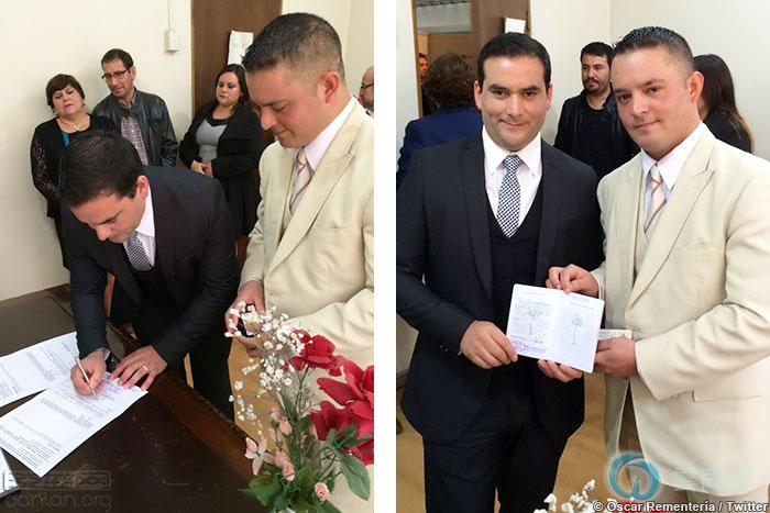 智利警察雨果·阿卡德(Hugo Alcalde)与同性伴侣在首都圣地亚哥登记结合,成为该国首位进入民事伴侣关系同性恋警察。