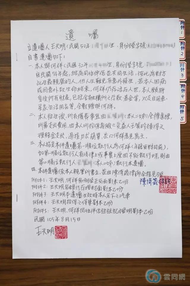 两人已经在律师的见证下立下遗嘱,将来无论任何一方先离开人世,都希望遗嘱内容可以保障另一方