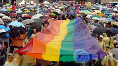 不畏蔷薇台风来袭,第六届台湾同志游行昨天照常举行,一万八千人参加,较六年前仅500人上街,创历届新高,参与团体也历来最多元。全长五百四十公尺的彩虹旗更在游行队伍合力高举下,飞跃在台北热闹的街头,也创下全亚洲最大的彩虹旗纪录。