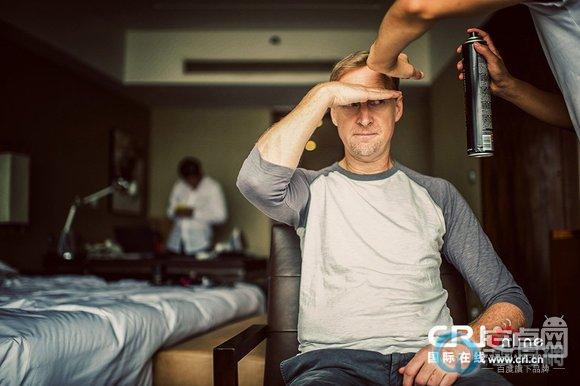 2. Scott一边跟Brian聊着天,造型师一边帮他打理发型,Scott的脸上始终洋溢着幸福的笑容。