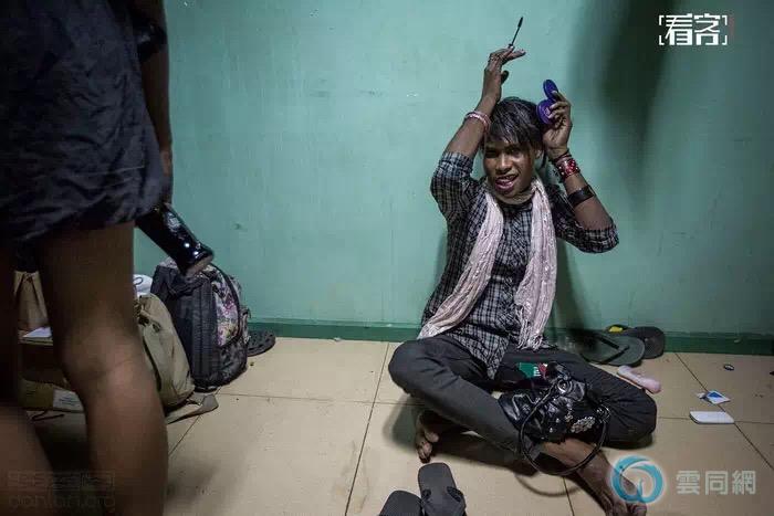 来自哈努阿巴达村的同性恋者正在“钻石夜总会”里化妆,他将在这里表演。