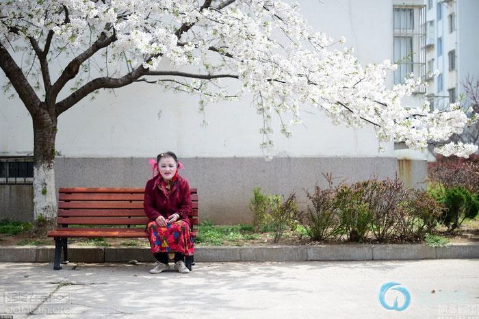 2017年4月6日,青岛。在他居住的地方,有一株满是花朵的树,他请作者给他在树下拍张照片。他说,他年纪大了,变性的心思淡了,主要是没钱,如果真有合适的机会,他还是想铤而走险试一试。