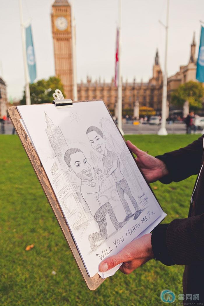 2015年,尼克前往英国伦敦,探望正在那里留学的多米尼克。在游览国会广场的时候,多米尼克邀请一位街头漫画家为他们画一幅画像。