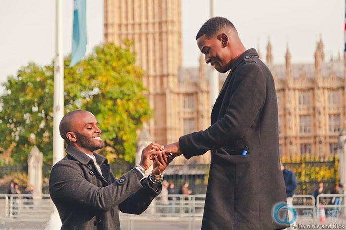 尼克惊喜地转过身,看到多米尼克在他面前单膝跪下,手里拿着一枚戒指。此情此景,仿佛是那幅漫画的现实版镜像。