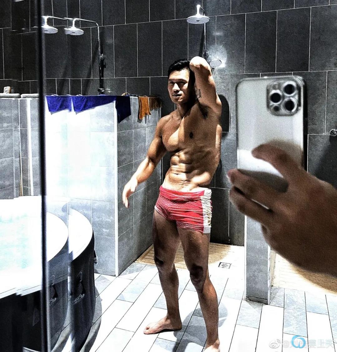不仅如此他还拍了一张超炸裂的浴室自拍,这肌肉身材真的需要超大的训练量来维持了。