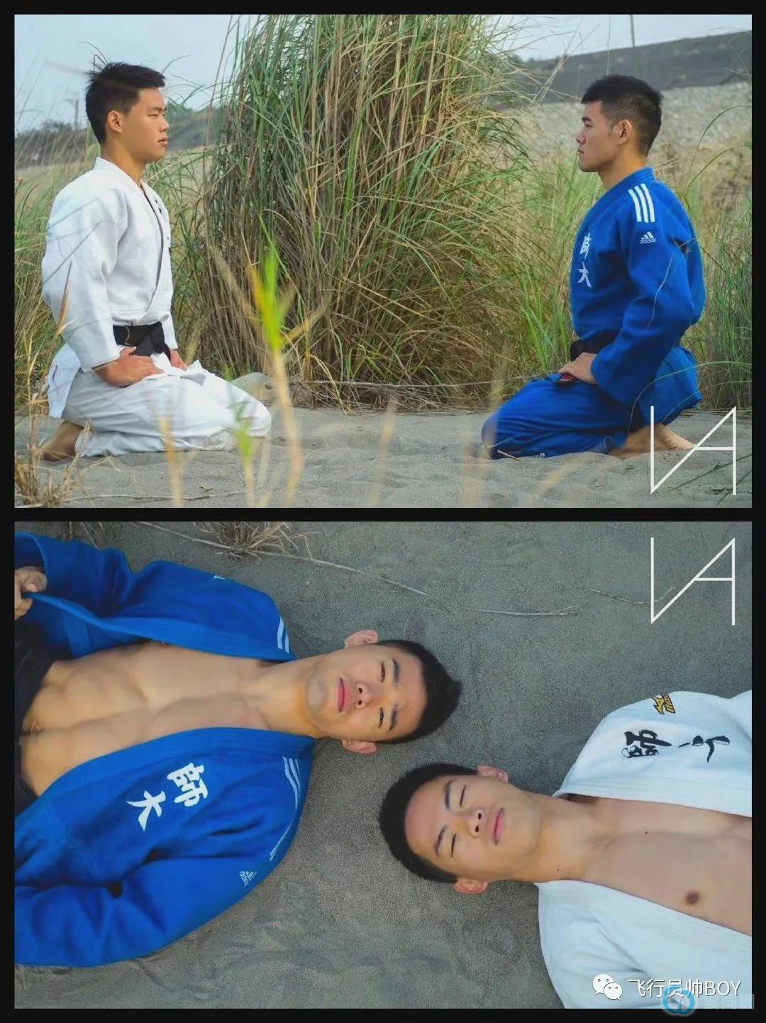 原本以为两个人只是单纯的队友关系,毕竟同在台师大的跆拳道队,一起合影拍照也是很正常的。两位小哥哥的身材都很优秀,摄影师邀请他们扮演情侣也是有可能的。