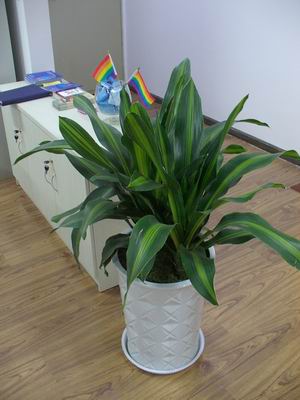 现在,屋里有家的感觉了。进门,就看见左手边放着张桌子,上面摆放着一些资料,云南省疾病控制中心、云南艾滋病防治研究中心、云南省疾病防治监测中心编写的《预防艾滋病宣传手册》,还有其他防艾资料。一个形似脚杯的瓶子里装着免费发放的安全套,插着两支小六色旗。恐龙说,是“爱白”赠送的,国内几乎不见生产这类旗子。
