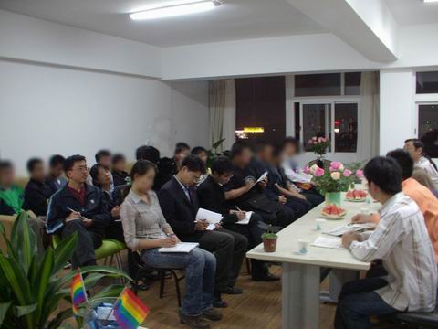 “我来到我们社区,看了后挺高兴。我数了三遍,我们这里有3位漂亮的姑娘,21位帅气的小伙。这些年轻人很阳光。”张北川跟大家讲了自己的一个经历。2002年中英项目与云南省健教所合作一项关于同性恋的调查,来了半年找不着人。他平时与20几位云南的男同性恋者有联系,便告诉他们自己将到云南,如果愿意就和大家见见面,最后去了十几个。“现在大家能够主动地走出来,说明社会在进步。但更重要的是学会从我做起。”