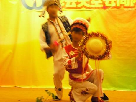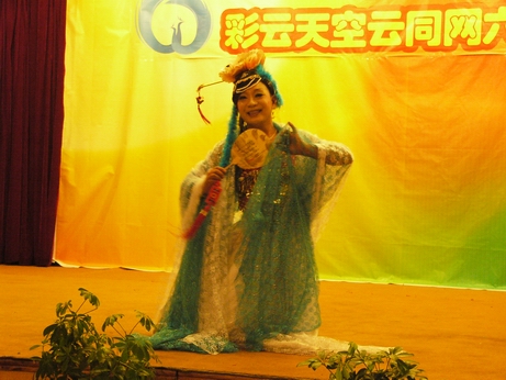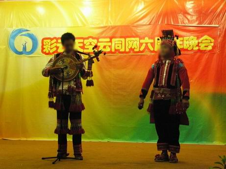 晚会上,来自昆明、红河和大理的演员,特意表演了精心准备极富当地民族特色的节目。红河关爱小组的两位‘同志’演唱了李怀秀、李怀福姐弟,在CCTV青歌赛上获原生态唱法金奖的节目《吉祥鸟儿飞起来》。反串李怀秀的演员刚一开唱,仿佛原音重现一般,立即引来台下的观众们此起彼伏的掌声。