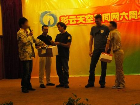 7月14日晚,彩云天空云同网六周年晚会在云南饭店隆重举行。灯火辉煌的演出大厅里,坐满了从昆明以及红河、大理赶来的‘同志’,大家围坐在一起谈笑风生,欢庆自己的‘节日’。云南省疾病防控制中心性病艾滋病防制中心的工作人员专门到现场进行防艾知识宣传和检测工作。数十名“同志”防艾志愿者也参与活动并发放防艾宣传材料。