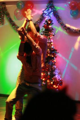 还在大厦门口,就有手持彩虹旗的志愿者迎接,并给每位朋友戴上荧光棒做的手环。进入休闲吧,“美丽的天使”和“可爱的圣诞老人”热情地招待着大家,并给朋友们送上漂亮的面具和饮品。伴随着温馨的灯光和欢快的节奏,大家相互认识,互相交流,欢声笑语,彼此间没有了距离和隔阂,充满了温暖和融洽。