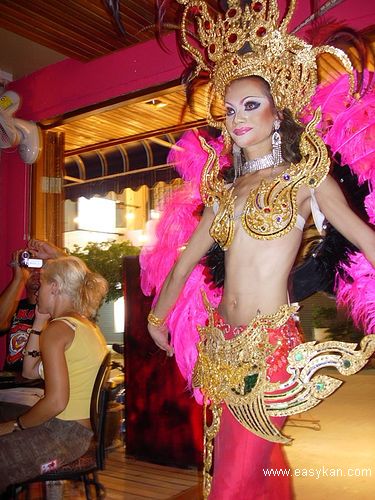 The song used frequently for dancing and singing by transgender entertainers, originating from popular Chinese TV series "Journey to the West--A Monk in Tan Dynasty on his trip to India to study Buddism ", one of the 4 ancient traditional calssical novels in China. The lady in this TV clip is the Queen of the All-female Kingdom, who is desperate trying to persuade the monk to stay with her and enjoy her high position and great wealth ...............