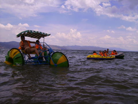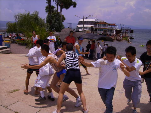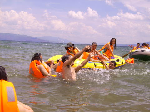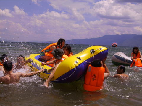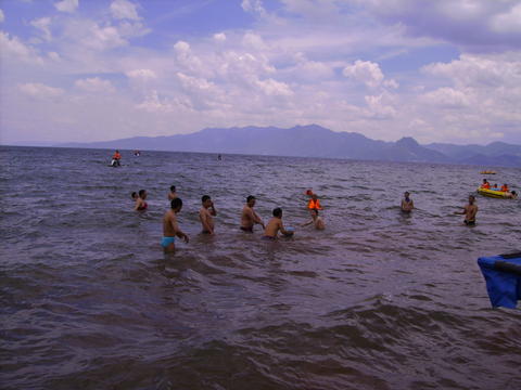好日子.好心情在加上来自各地同志朋友的到来,欢声笑语冲满了整个抚仙湖“金沙滩”,不知觉就到了吃饭的时间了,看着色香味美的饭菜,大家味口大开,可能是那么多的同志朋友在一起吃饭,格外开心的缘故吧!把一路的辛劳都给忘记了;午餐后,我们把大家集聚在一起玩游戏,游戏内容很简单,但是每个人都很热情玩的很开心真是笑声不断, 可谓是其乐融融!