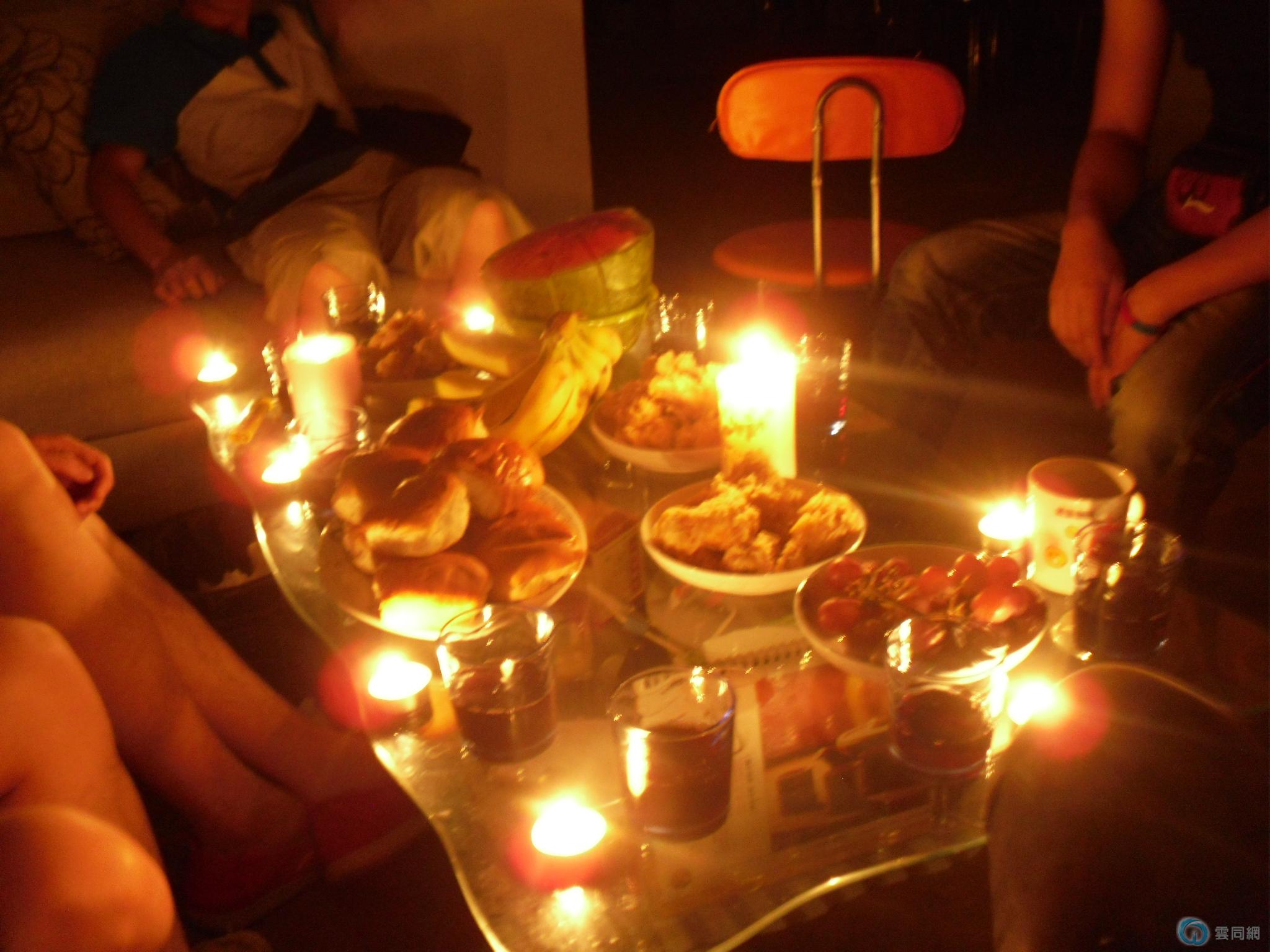 3、我们的月色:葡萄酒、鸡翅、面包、茶腊、香蜡、水果、玉米……中西结合、半土不洋的搭配成为今晚的亮点,兴之所至自在逍遥的各位朋友则成为七夕的主角。活动的高潮来自于一个假设:“地球将要毁灭,在现存的这几个人中你会选择与谁共度?”有朋友很幸运的彼此选中对方,大家开心的吃奖励的巧克力,有朋友则比较悲催,直接被对方说“希望我们早日分离”,%>_<%!真心话大冒险活动则开启了最高潮。原本有些微陌生的朋友在真心话中颇受折磨,居然连续输五次,欲哭无泪,要求亲吻指定人士时竟用靠垫挡着脸o(╯□╰)o。有的朋友则颇大方,上演脱衣舞是如何炼成的独门秘诀O(_)O~。高潮中的高潮是把女士赶回卧室,同志们解释如何为朋友脱衣服。O(╯□╰)o