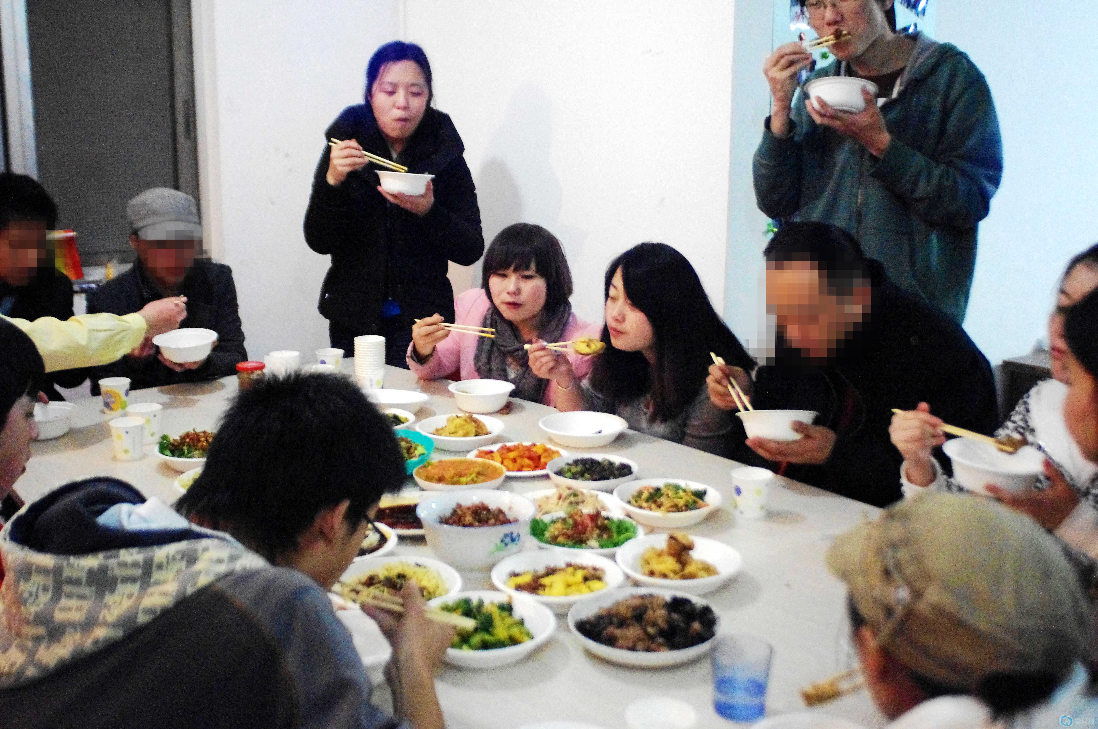 同志们一阵胡吃海喝之后 多淡定地就分桌坐 各玩各的克了 比如 麻将一桌 桌游一桌 苦逼春晚一桌~~