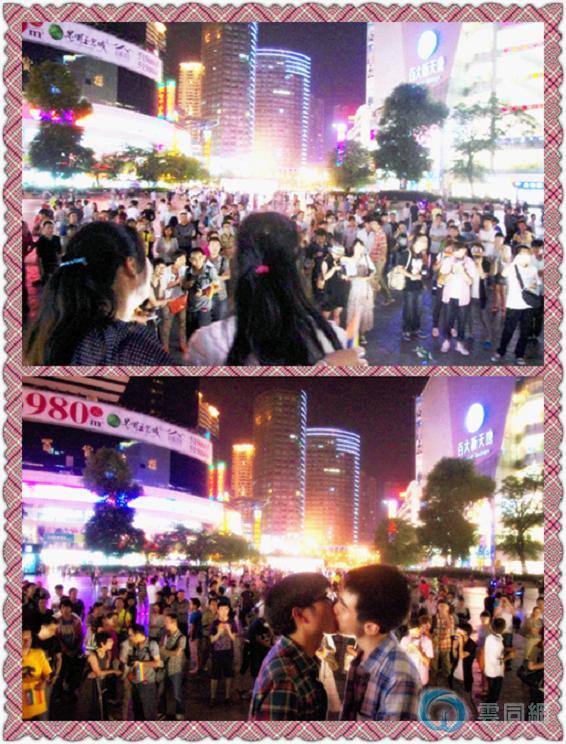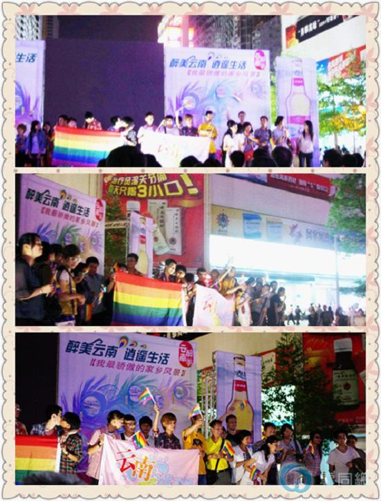 2012年5月27,在云南的昆明有这样一群人,用自己的亲吻与拥抱感染了每一个驻足观看的路人,把平等和包容传递给大家。TA们是都是同性,TA们正相爱,他们是来自云南平行这个公益组织的志愿者。云南平行成立于2007年10月,是一家立足云南性少数人群社区的公益非政府组织。他们想通过行为艺术的最直接的表达同志的爱,让社会大众能够意识到有这样的一个群体就在我们身边,他们除了喜欢的对象是同性之外,没有什么和异性恋不一样,他们是同志。