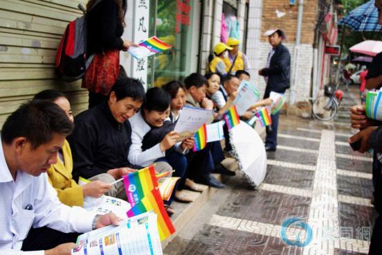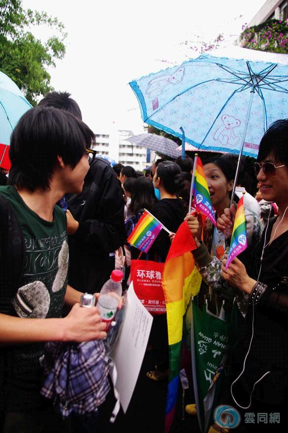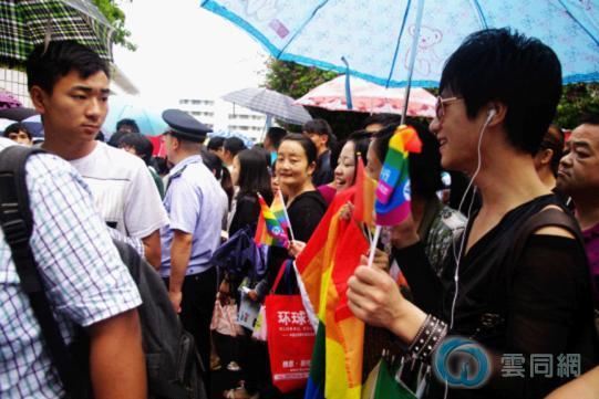 随着彩虹旗的发放和交流的深入,在场有很多考生家长也参与到与志愿者的交流和讨论而来。随着经济的发展和社会的进步,性话题已不再是禁忌,包括同性恋在内的性少数人群已经得到很多70后甚至60家长的认同。双方就一些观点交流的意见,并达很多成有益的共识。