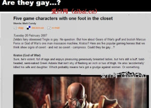 2月20日,游戏资讯网站“GamesRadar.com”在一篇文章中对五个流行游戏中主角人物的性倾向进行了一番分析。尽管该文章在主观上不一定带有歧视意味,但其中把各人物在外貌衣着、行为举止、性格等方面的表现与其是不是同性恋这一话题关联起来的说法,还是引发了异议。