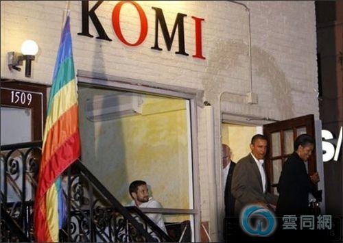 上图:奥巴马与夫人与5月7日在一家位于华盛顿同性恋商业区的KOMI餐厅就餐(图/美联社)。