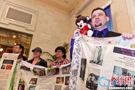 组织这次集会的美国婚姻平等组织行政主任莫莉•麦凯表示,今天普天下都在为异性恋情人终成眷属欢呼之时,我们要提醒世人,相爱并有意愿组成家庭是每个人生来具有的自由和权利,没有谁可以剥夺这项权利。