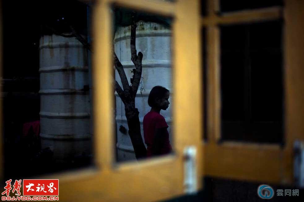 窗户中反射的是一个独自站在院子里的6岁小女孩,她的脸上搽了一种缅甸当地的防晒霜。在照片没有拍到的这个小屋内休息的是她同样感染艾滋病的双亲和妹妹。