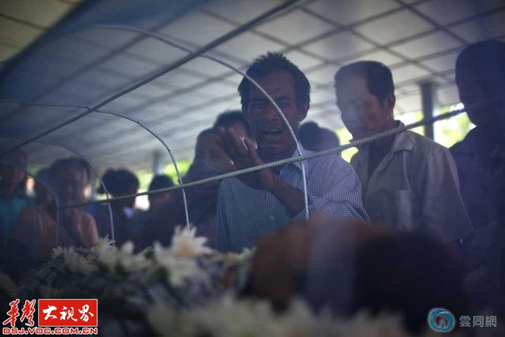 KyawNaingAung的葬礼上,亲属和朋友们前来悼念。