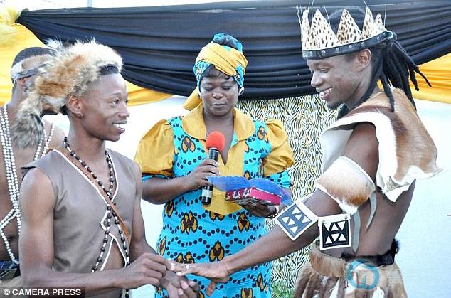 据英国《每日邮报》4月9日消息,南非两位男子日前举行了一场传统的婚礼。报道指出,这场婚礼被公认为是南非首场传统的同性恋婚礼。婚礼在南非夸祖鲁-纳塔尔省的一个小镇举行。Tshepo和其爱人Thoba分别来自茨瓦纳族和祖鲁族。婚礼上他们都身着传统的民族服饰,并在200位宾客前宣誓。Tshepo和Thoba现年27岁,他们结识三年,彼此深爱。他们的家人对这场婚姻表示理解,并给予祝福。Tshepo和Thoba称,他们现在迫不及待的想要孩子。自2006年同性婚姻就在南非合法化。它是世界第五个、非洲第一个同性婚姻合法的国家。