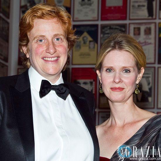 曾主演《欲望城市》的演员 Cynthia Nixon和她的同性伴侣Christine Marinoni也是一对相当高调的明星情侣,早在2009年的一次支持同性婚姻的纽约大集会上,俩人就高调现身。在等到纽约宣布同性婚姻合法后,这对夫妻就带着她们15个月大的儿子在去年喜结连理。