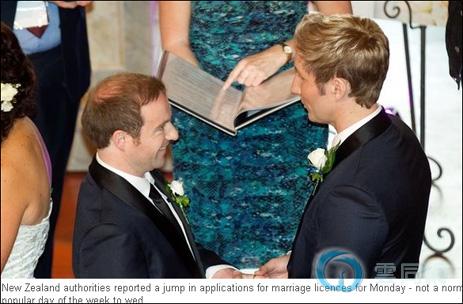 据英国广播公司(BBC)报道,新西兰在今年4月通过批准同性婚姻的法案,成为亚太地区首个,同时也是世界上第14个承认同性婚姻的国家。8月中旬,该法案生效执行,新西兰迎来第一批同性婚礼热潮。
