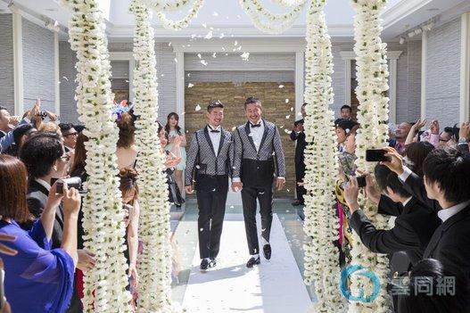 新华网日本频道北京7月31日电 据《赫芬顿邮报》日文版网站7月31日报道,庭院翠绿,礼堂洁白,典雅别致的婚礼会场。今年六月,日本一对男性情侣西田卓矢和菱沼圣哉在东京“青山迎宾馆”举行了婚礼。他们在亲友的注视中,走上红毯,互系领带,并宣誓永远爱对方。