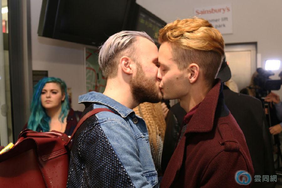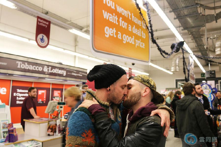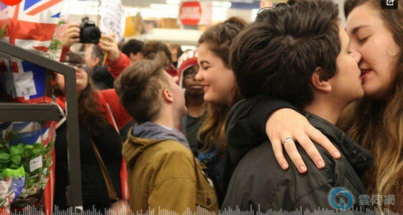 英国超市把一对接吻女同性恋赶走后 惹来大量同性恋人在超市热吻抗议