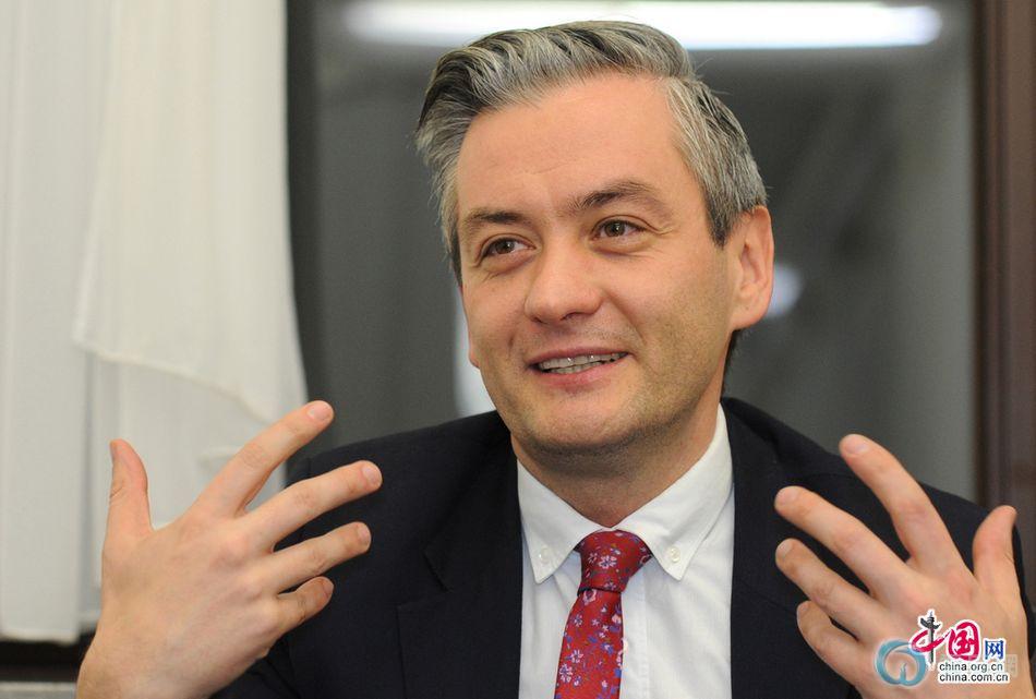 当地时间2014年11月28日,波兰华沙,波兰首位公开同性恋身份的议员Robert Biedron接受美联社采访。38岁的Biedron在11月30日被选为波兰北部城市斯武普斯克的市长,使他成为波兰首位公开同性恋身份的市长。