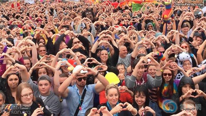 澳新网6日报道,珀斯罗素广场当日聚集了5000余名民众,他们呼吁各界支持同性恋者,并呼吁自由党给予同性婚姻法案自由投票的机会。另据了解,集会组织希望在社交媒体Facebook上征集到1.7万人支持。