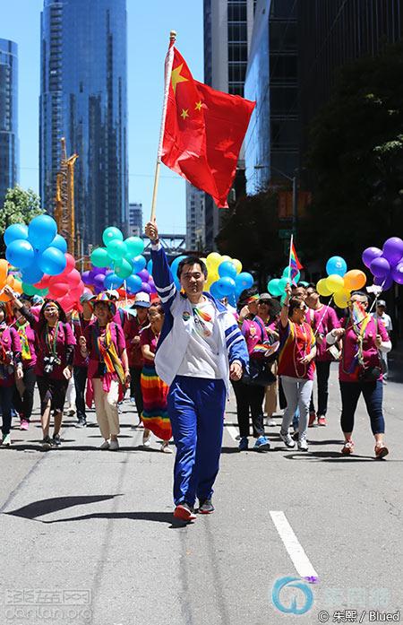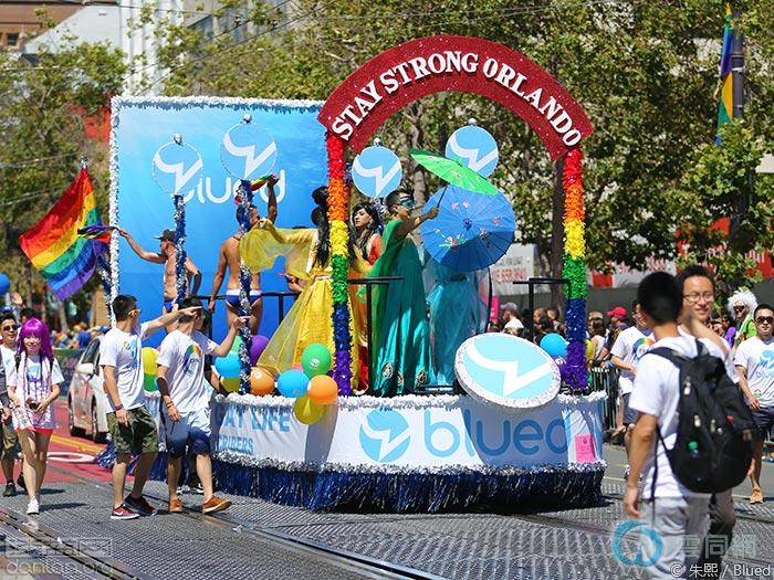 据美国之音电台网站6月27日报道,北美地区最大的华人同性恋组织“华人彩虹联盟”(Chinese Rainbow Network)在中国专供男同性恋者使用的交友客户端“淡蓝网”(Blued)的赞助下,组织成员们打造花车方阵,参与第46届旧金山“同性恋骄傲大游行”(Pride Parade)。