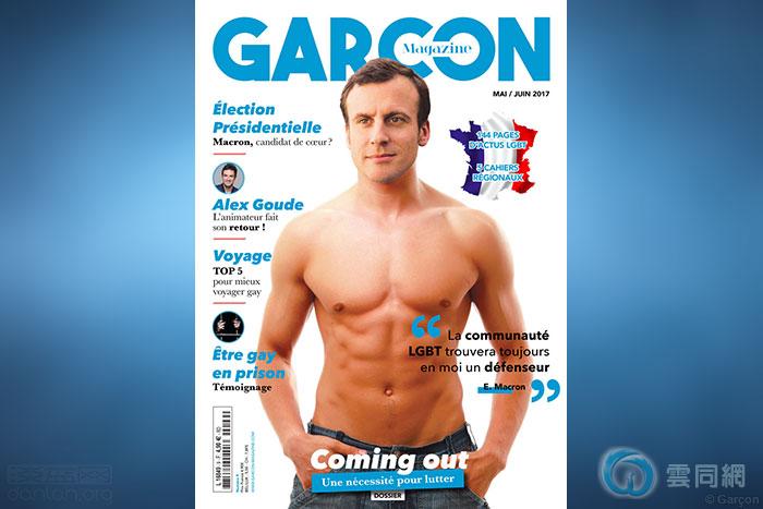 法国总统候选人艾曼努尔·马克龙(Emmanuel Macron)出现在同志双月刊《男孩》(Garçon)封面上,39岁的他不仅露脸,而且“露肌”,封面下方的标语“站出来(出柜):一场必要的斗争”(Coming out: Une nécessité pour lutter),更让人产生性倾向联想。于是,这期杂志刚发布,就成了争议焦点。