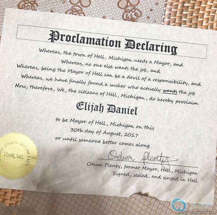 美国密歇根州有个小镇,名称让人菊花一紧,叫作“地狱”(Hell)。前阵子小镇迎来新镇长,颁布的第一道政令又让人菊花一紧:禁止异性恋!