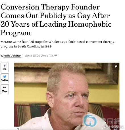 近日,美国同性恋治疗中心创始人宣布出柜!此前他已持续二十年投身于同性恋矫正治疗,于两年前被解雇。出柜后他表示,同性恋矫正只是一个谎言和诈骗广告。随后表示自己自己很后悔对别人造成了伤害,而且他还明白这个治疗中心还会继续造成很大的伤害。