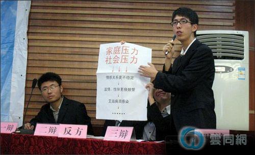 成都高校学生激辩同性恋婚姻 当场“示爱”