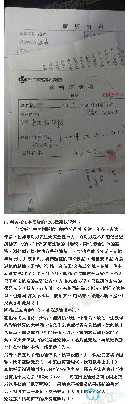 海航同性恋机长疑恶意传播艾滋完全记录(续)